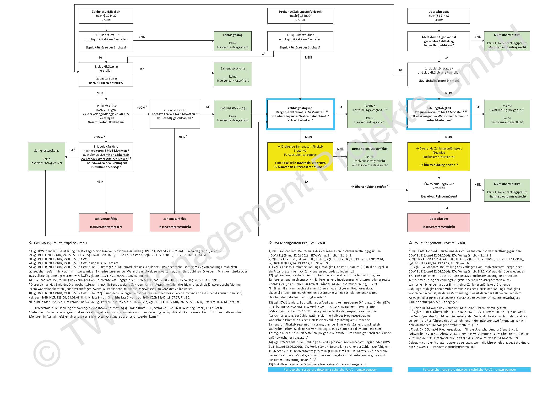 Die Geschäftsführung muss überprüfen, ob Zahlungsfähigkeit im Prognosezeitraum für 24 Monate mit überwiegender Wahrscheinlichkeit aufrechterhalten werden kann, mehr Gründe dafürsprechen, als dagegen.